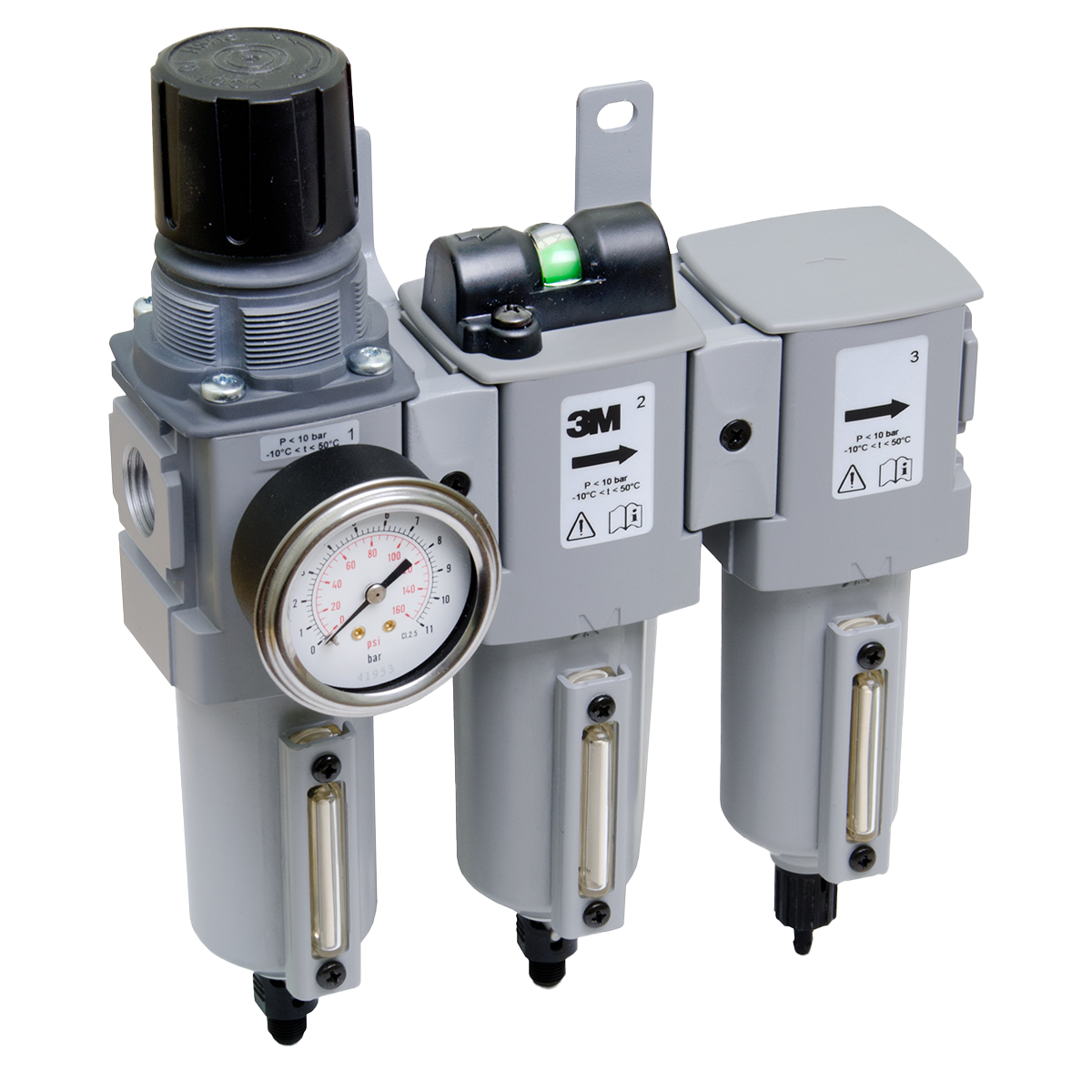 De NIEUWE 3M™ Aircare™-filtratie-unit levert lucht van de hoogste kwaliteit aan het ademhalingsapparaat met luchttoevoer en persluchtgereedschap door water en olie-aerosolen, deeltjes en geuren uit de door de faciliteit geleverde perslucht te verwijderen.