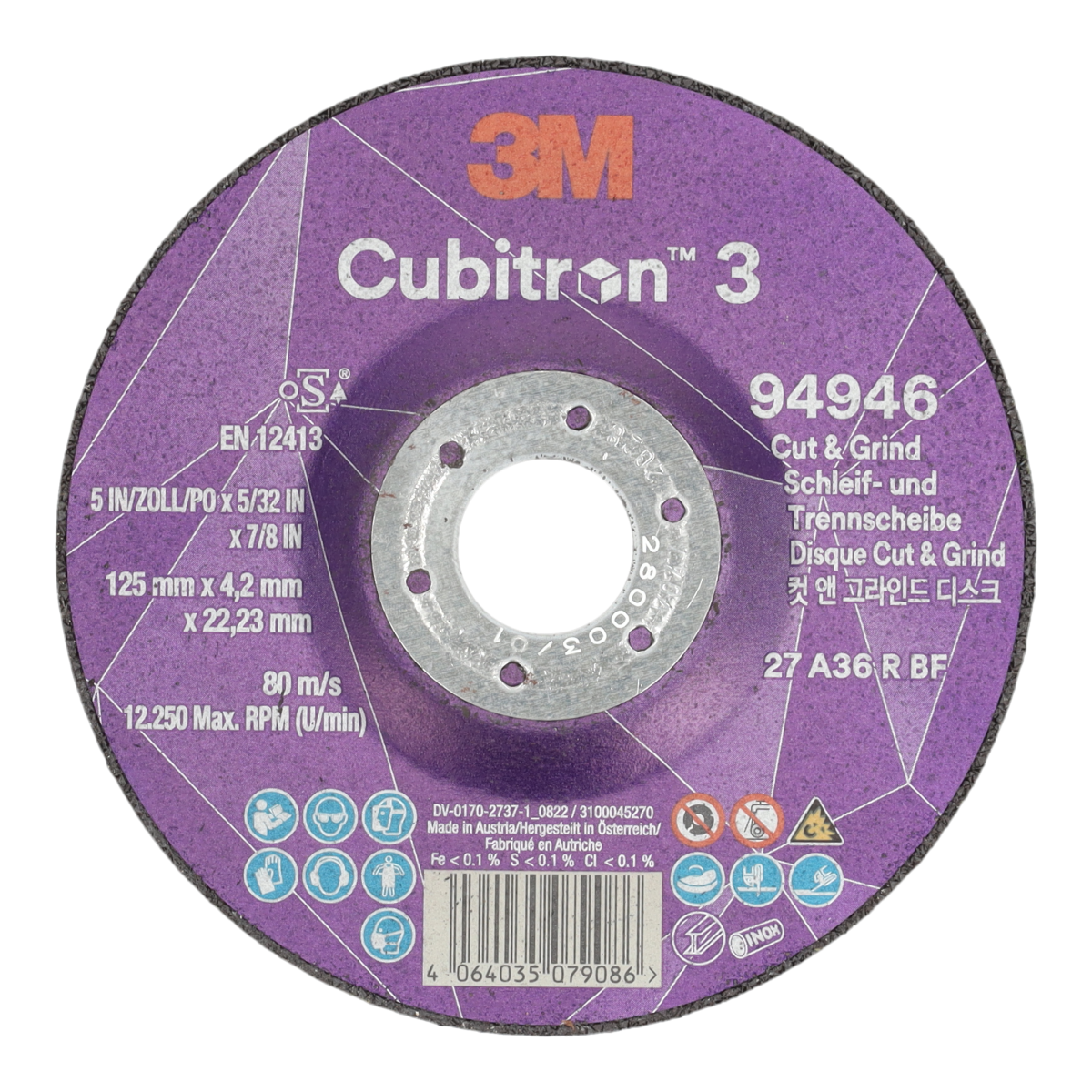 De 3M™ Cubitron™ 3 Cut & Grind-schijf is een veelzijdige oplossing die als slijpschijf en als doorslijpschijf kan worden gebruikt – waardoor deze ideaal is voor snijden, slijpen, maken van groeven en meer. In tegenstelling tot andere schuurproducten die zijn ontworpen voor slechts één doel, kan deze schijf voor meerdere doeleinden worden gebruikt.