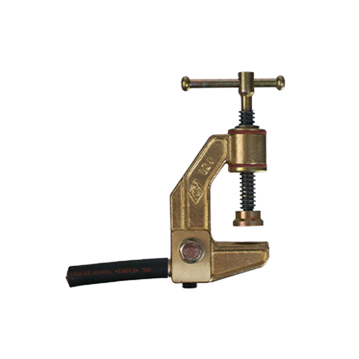 De aardklem heeft een van de lasstroom geïsoleerde spil en moer, waardoor uitgloeien of verschroeien onmogelijk is en een lange levensduur wordt bereikt.