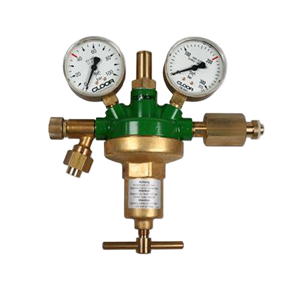 De GL 51 Stikstof drukregelaar van het merk Gloor is uitgerust met twee manometers en geschikt voor stikstof cilinders en heeft een instelbare werkdruk van 40 bar.