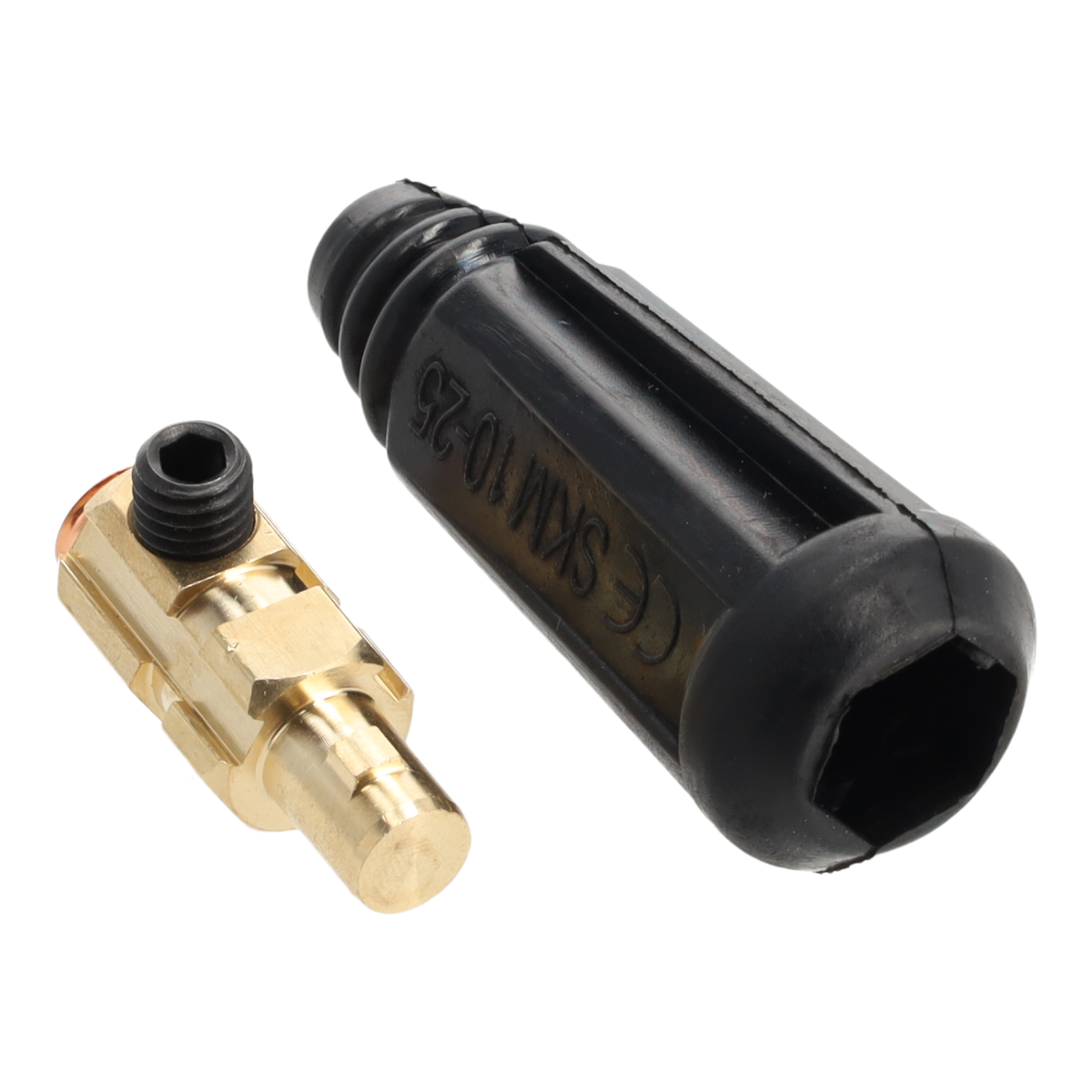 Bajonet koppeling in robuuste uitvoering met kabelaansluiting. Eenvoudig en zeker, makkelijk in elkaar te zetten, optimale veiligheid doordat messing delen door rubberen moffen beschermd worden.