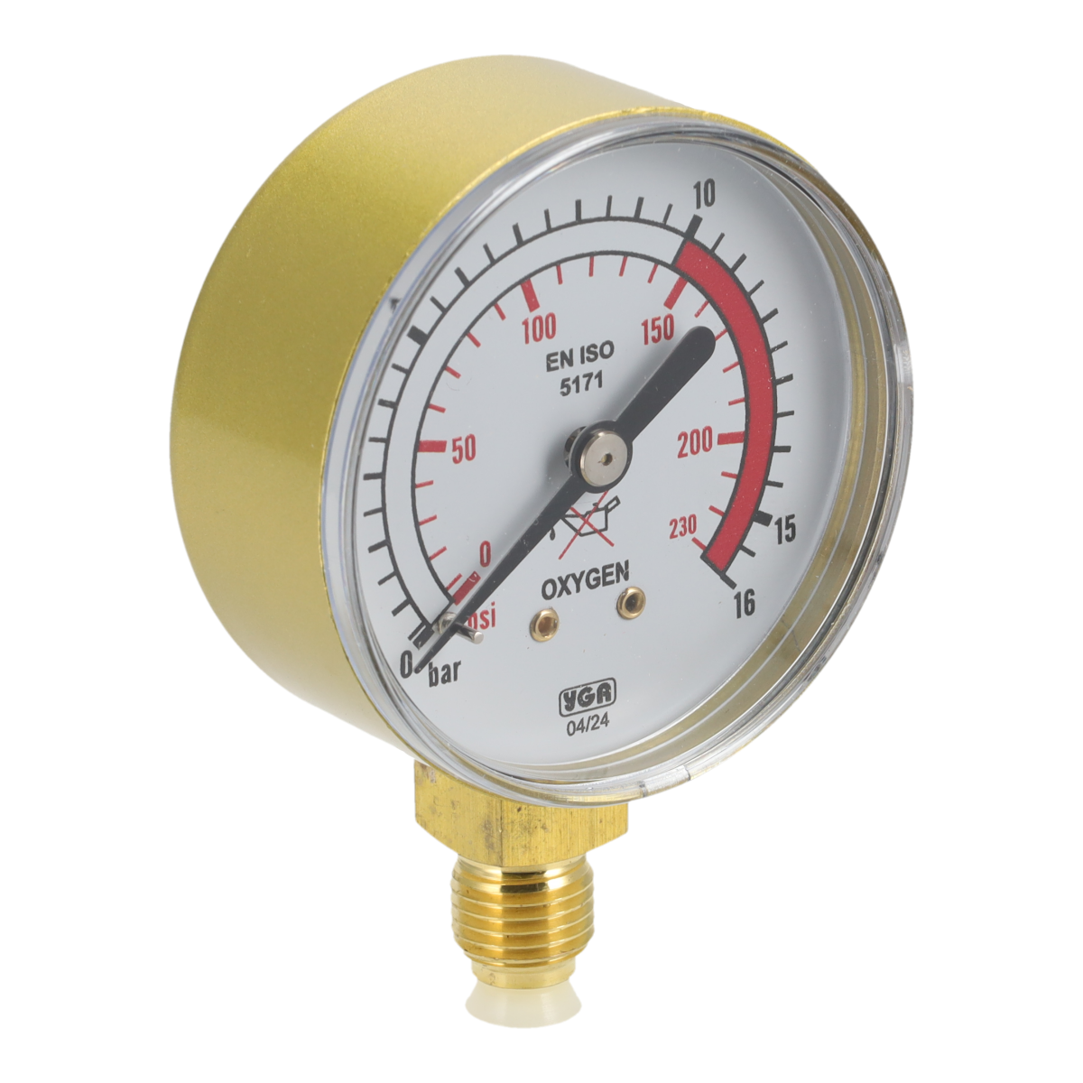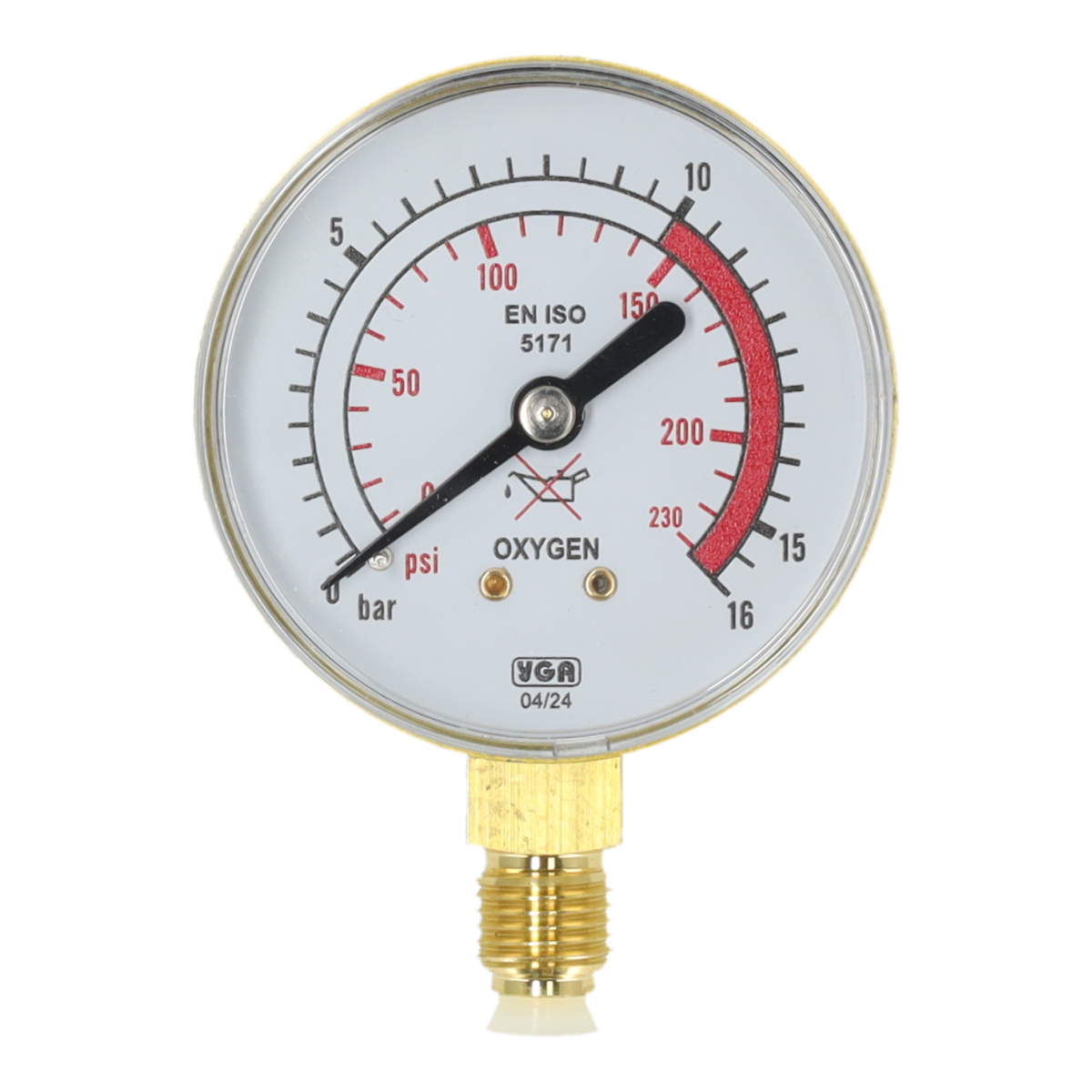 Assortiment Lastoebehoren Drukregelaars Manometers Manometer 1/4”R, Ø 63 mm, 0-16 bar, Zuurstof Bestelnr. 163009941 Manometer 1/4''R, Ø 63 mm, 0-16 bar, Zuurstof Manometer met onderaansluiting. Bekijk alles