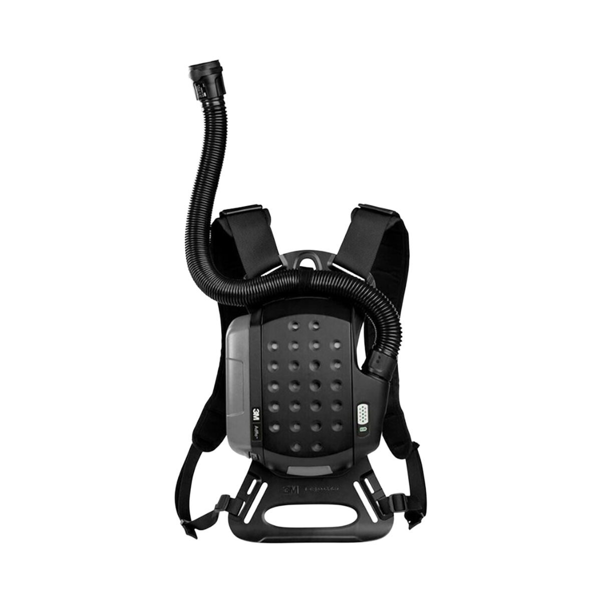 - Draag uw PAPR (Powered Air-Purifying Respirator, motoraangedreven ademhalingssysteem) comfortabel met een rugzak voor lassystemen