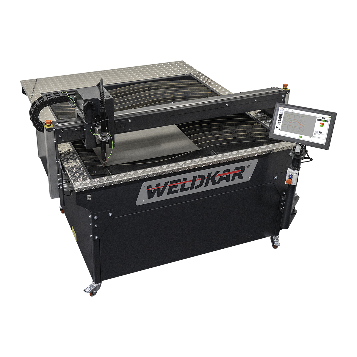 Door de overzichtelijke, duidelijke afbeeldingen, de grote gebruiksvriendelijke knoppen en een touchscreen interface is de Weldkar snijtafel makkelijk te gebruiken en te bedienen.