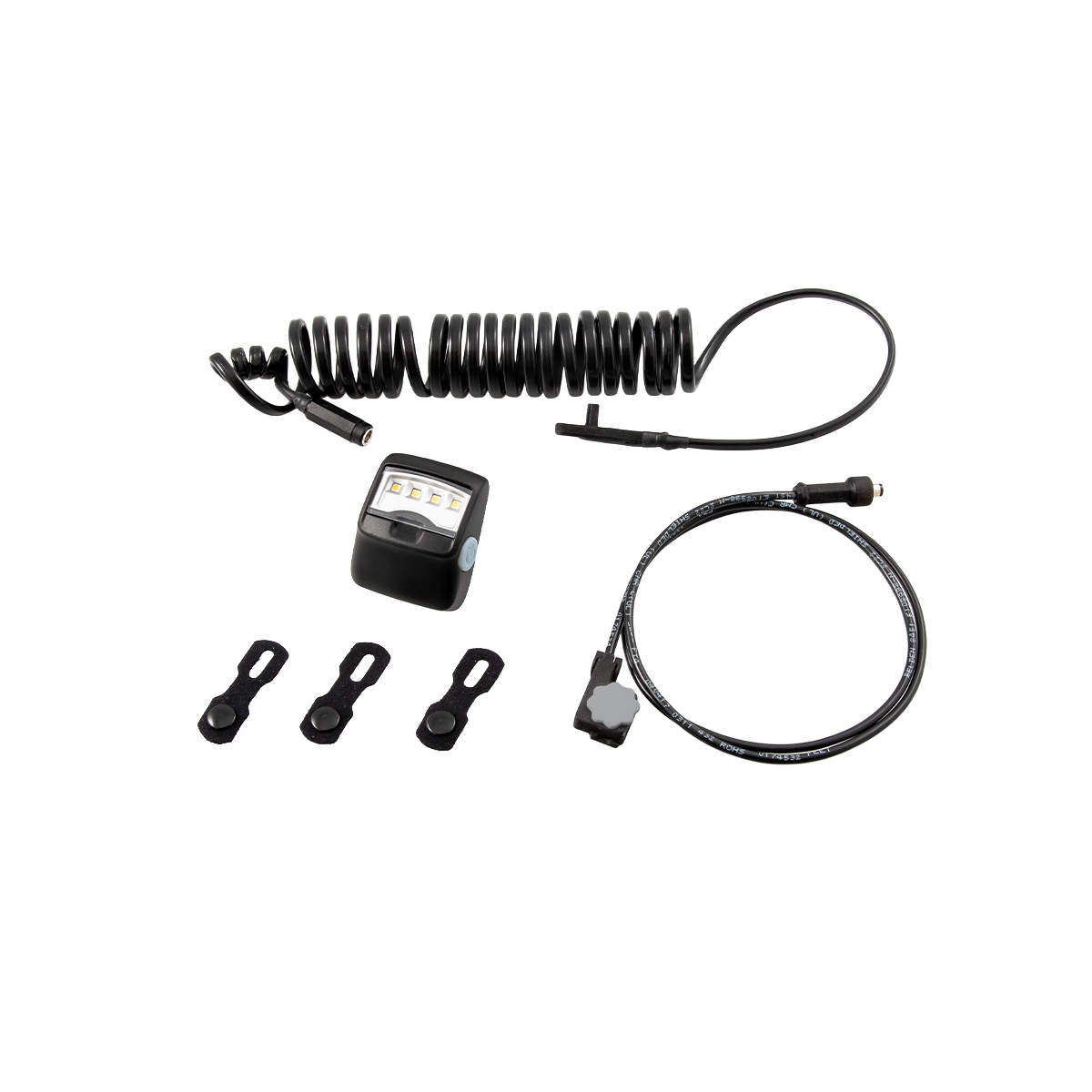 Complete werklampkits en onderdelen voor de 3M™ Speedglas™ Lashelm G5-01 en G5-03, zoals lamp, beschermplaat, bevestigingsonderdelen en kabels.